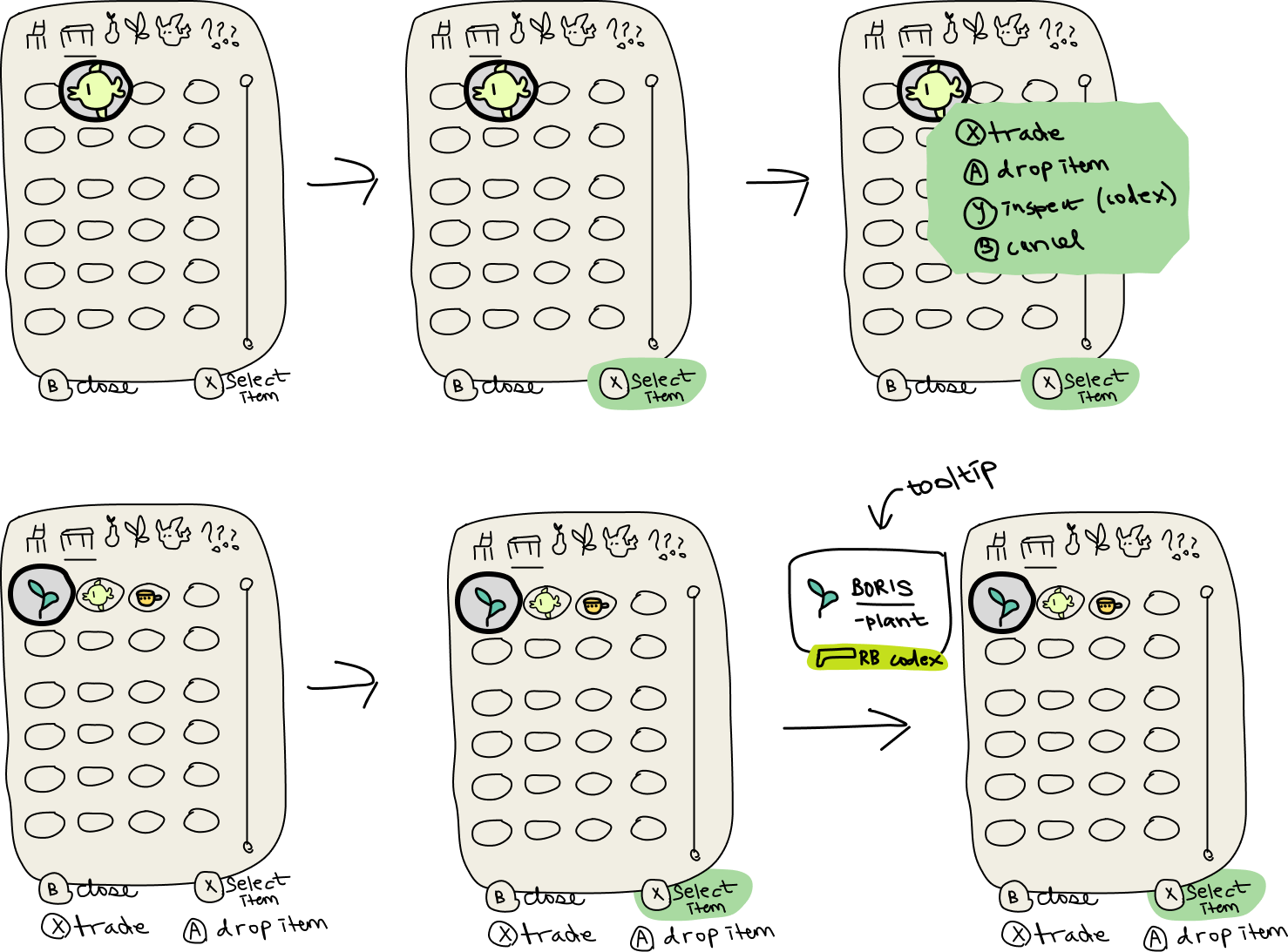 The video below shows my proposal for the navigation and general selection behaviour of the backpack items (made in Figma).